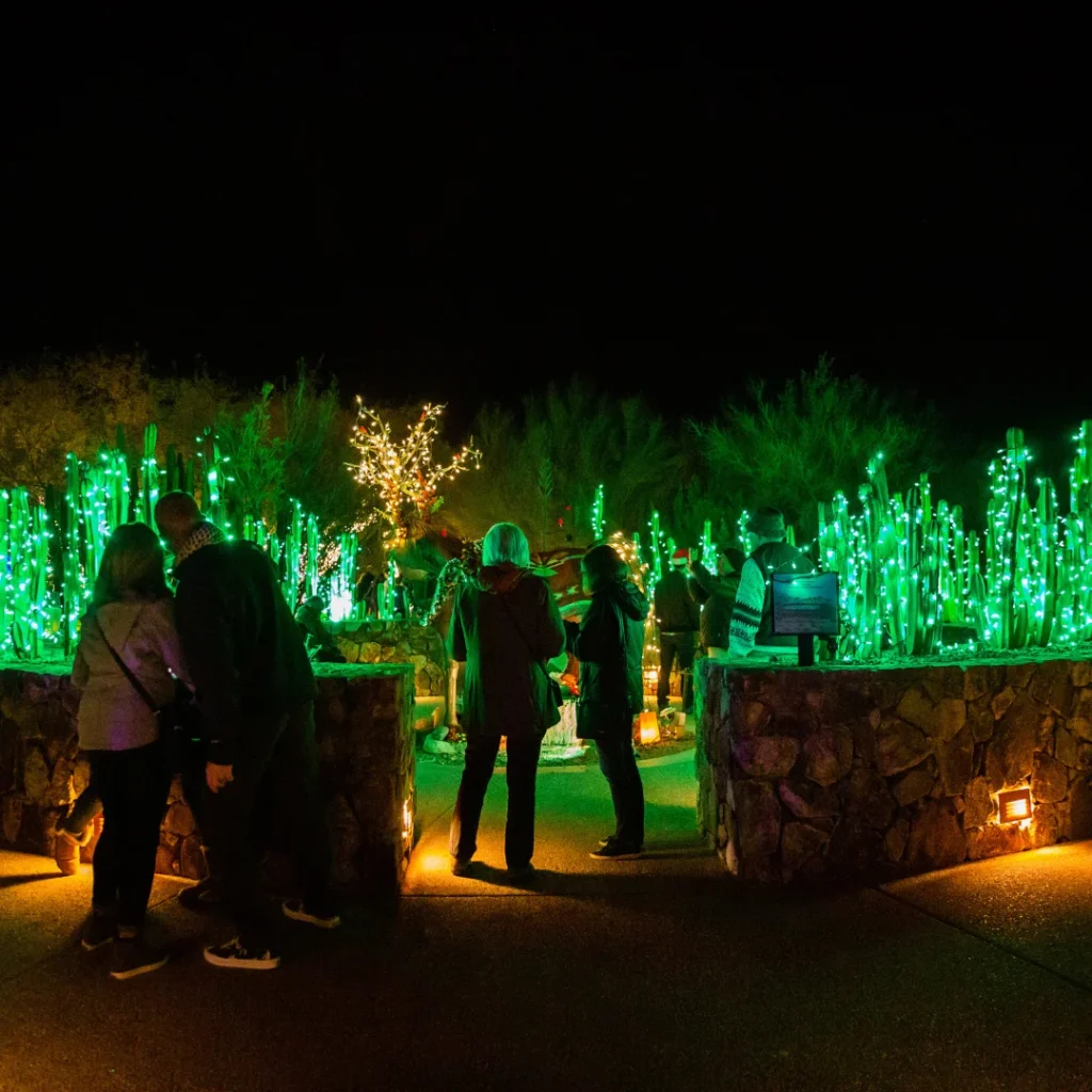 This botanical garden glows with thousands of lights wrapped around saguaros, mesquite trees, and desert pathways. Enjoy live music, hot drinks, and peaceful desert beauty all lit up for the season.